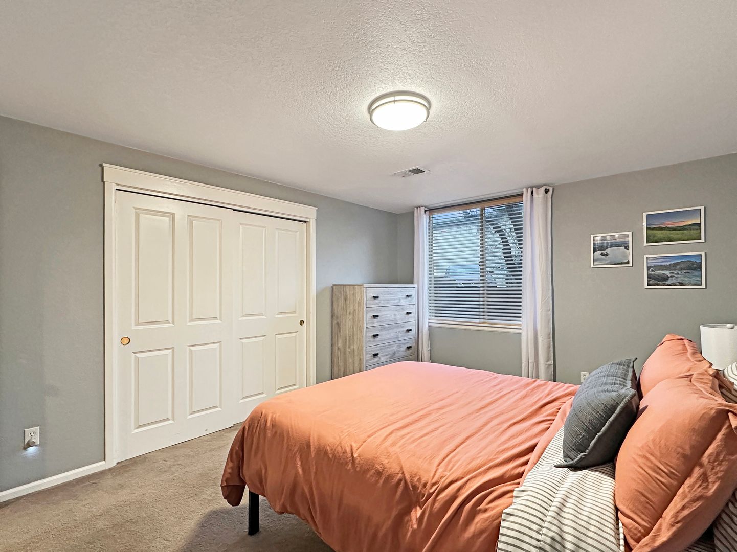 The primary bedroom serves as a private retreat with a spacious layout, while the second bedroom is equally comfortable and versatile. A newly updated bathroom is conveniently located next to the lower-level bedroom, adding both style and functionality.